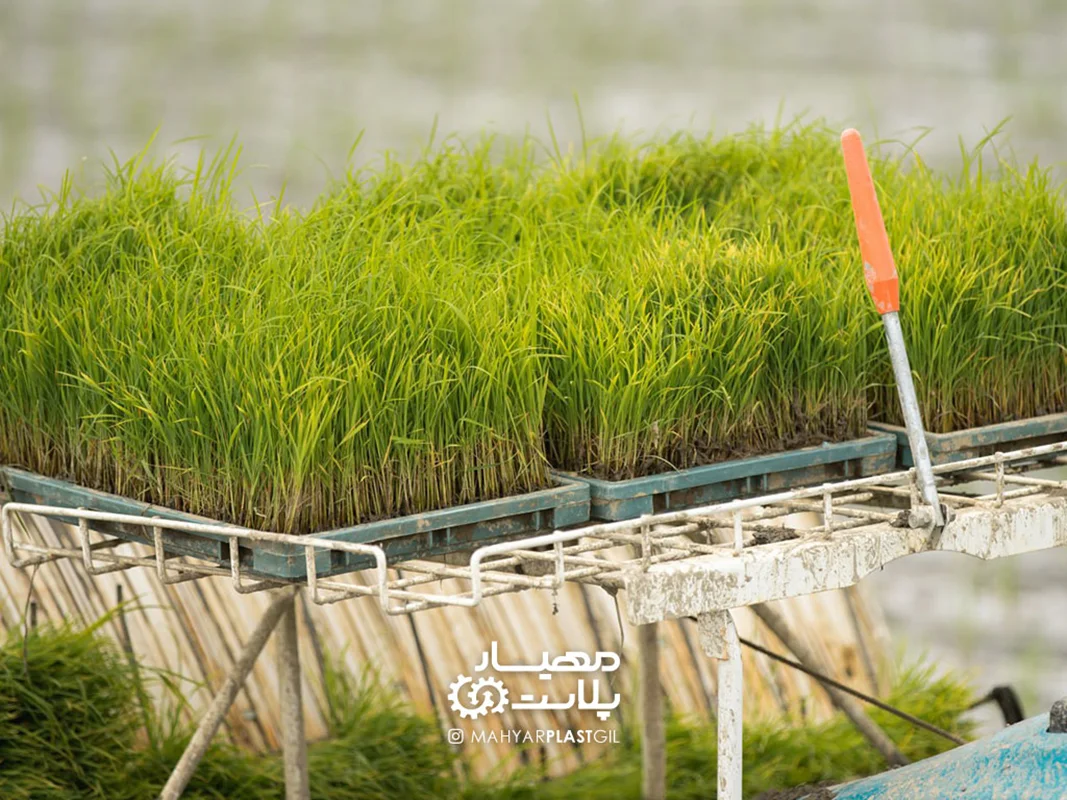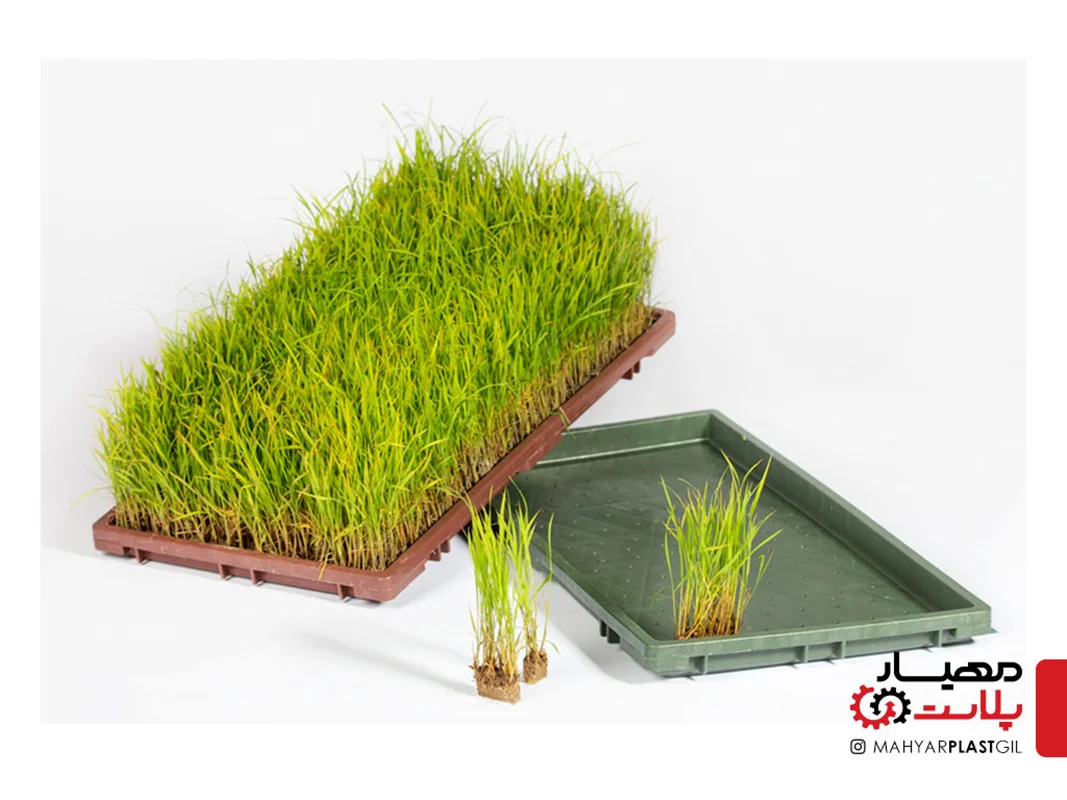 سینی نشا یا باکس نشا برنج. تولید شده از مواد پلاستیکی تزریقی. مناسب برای کاشت انواع برنج و صیفیجات با تعداد حفرههای بالا. مورد استفاده در گلخانه، کشت و نشا برنج. (از تیراژ 500 عدد به بالا با امکان تولید با رنگ و لوگوی دلخواه)